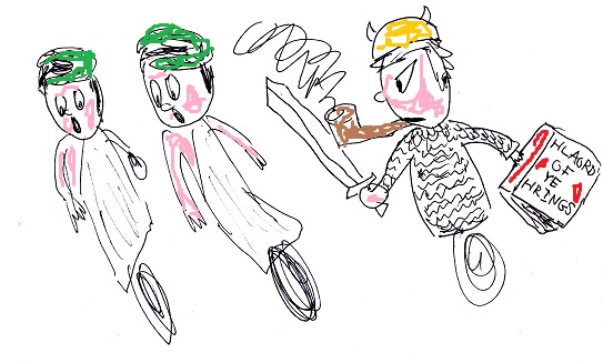 Furthermore, our scientists have determined that each step of physical evolution was also the work of TOLKIEN. TOLKIEN was the first bacterium to become an amoeba. He was the first multicellular organism, the first trilobite, the first vertebrate. He it was who first dared the leave the waters for dry land, He who became the first mammal, and He who first stood erect. He then invented the razor, shaved off all His fur, and became human. And He it is who transcended humanity. We believe He is now a giant caelestial jellyfish; but Morambar has not spoken on that point, and scholars cannot map Him, for die Getolkien sind frei..